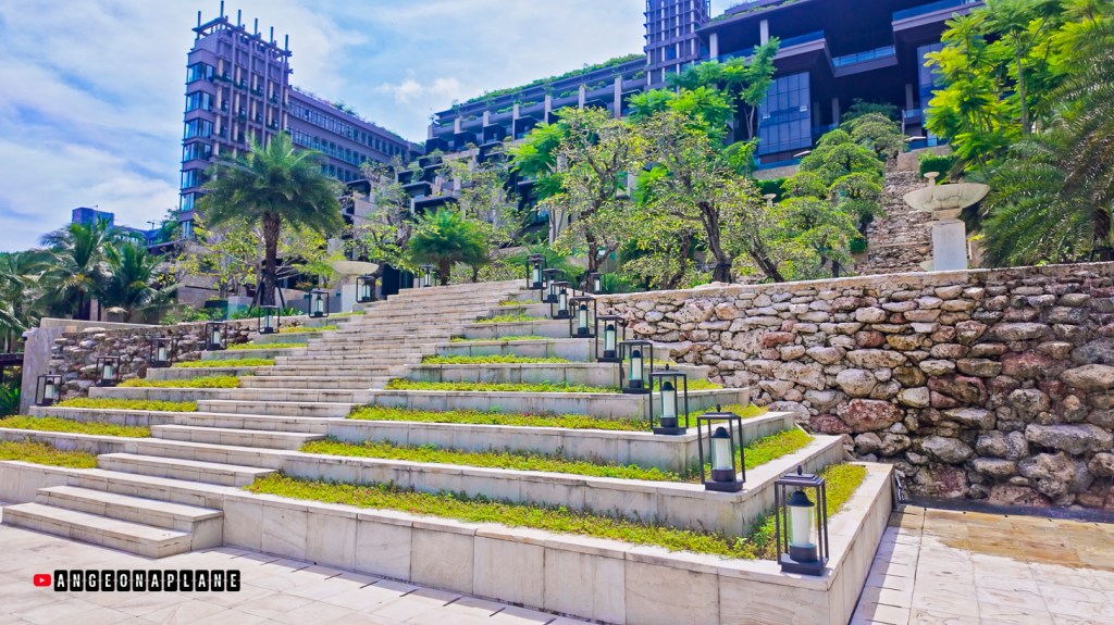 The resort is designed like a cascading village of blocks and terraces… which reminds me of Lego. It’s beautiful, but also a tiny bit of a maze. To reach the beach and pool level, you need to walk to either end of the temple to catch the elevators to go all the way down. Plan a little extra time for getting around, especially in the heat.
